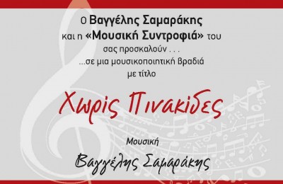 Ο Βαγγέλης Σαμαράκης και η «Μουσική Συντροφιά» του, σας προσκαλούν σε μια μουσικοποιητική...