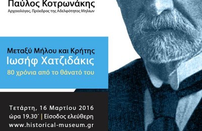 Με τη συμπλήρωση ογδόντα χρόνων από τον θάνατο του Ιωσήφ Χατζιδάκη(Μήλος 1845 – Κρήτη 1936),...