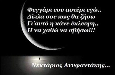 Φεγγάρι εσύ, αστέρι εγώ, δίπλα σου πως θα ζήσω γι αυτό ή κάνε έκλειψη ή να χαθώ να σβήσω