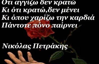 Ότι αγγίζω δεν κρατώ κι ότι κρατώ , δε μένει κι όπου χαρίζω την καρδιά πάντοτε πόνο παίρνει