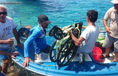 Ταξίδεψε, χωρίς πόδια. Ταξίδεψε επάνω σε αναπηρικό καροτσάκι από Τουρκία προς Λέσβο....