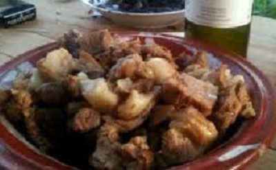 Κόβουμε ψαχνό από το χοιρινό σε κομμάτια και το τσιγαρίζουμε καλά σε μια κατσαρόλα με λάδι...