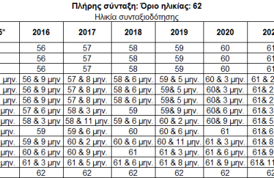 Απόφαση για την αύξηση των ορίων ηλικίας συνταξιοδότησης (πίνακες)