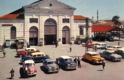 Χανιά γύρω στο 1960. Ταξί εν αναμονή έξω από τη Δημοτική Αγορά της πόλης. Όλα (πλην ενός)...