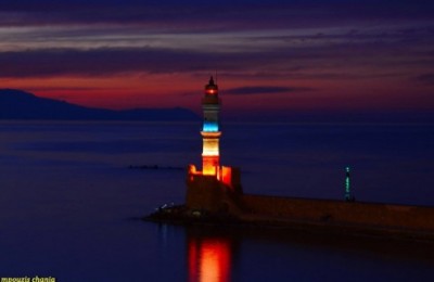 Ο φάρος των Χανίων στα χρώματα της Γαλλικής σημαίας