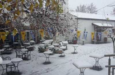 Και στα Ανώγεια χιονίζει σήμερα… Αυτό σημαίνει κέρασμα αντικριστό, ρακί και ευχάριστη...