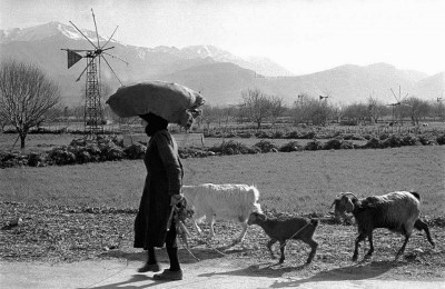 Γυναίκα και οι κατσίκες της. Στην πεδιάδα, ανεμόμυλοι . Κρήτη, 1955 – Φωτογραφία : Erich Lessing...